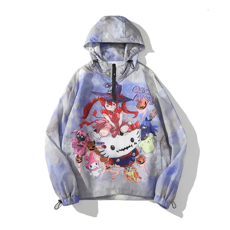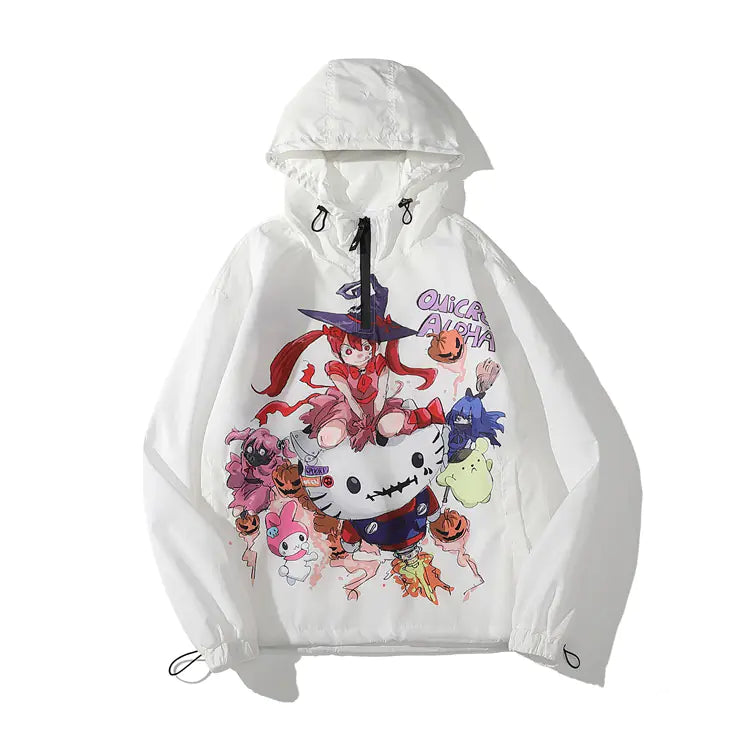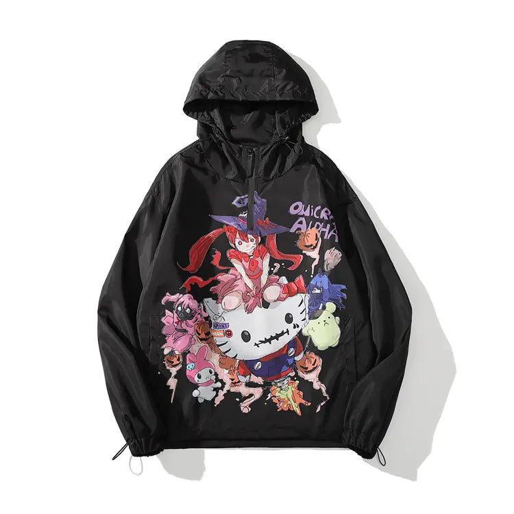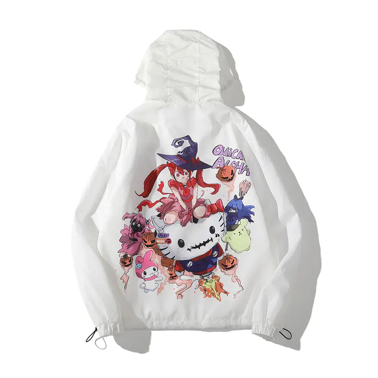 Anime Cartoon Printed Hooded Windbreaker Jacket