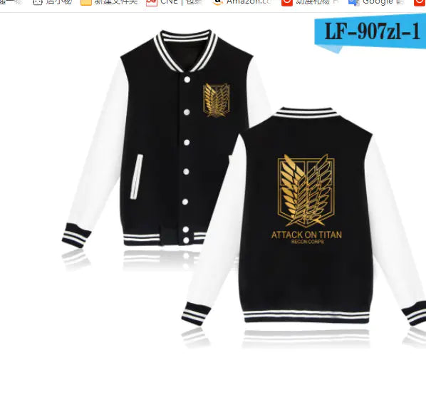 ★★★★★Step into the world of anime with our stunning Attack on Titan Survey Corps Mikasa and Eren design jacket. This stylish baseball jacket is perfect for the fall and winter seasons, keeping you warm while showcasing your love for the epic series.