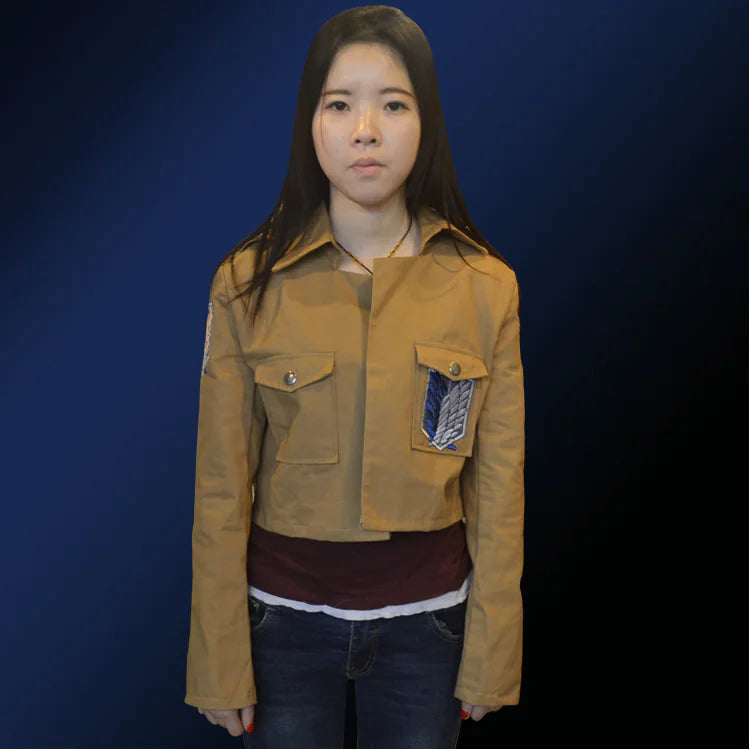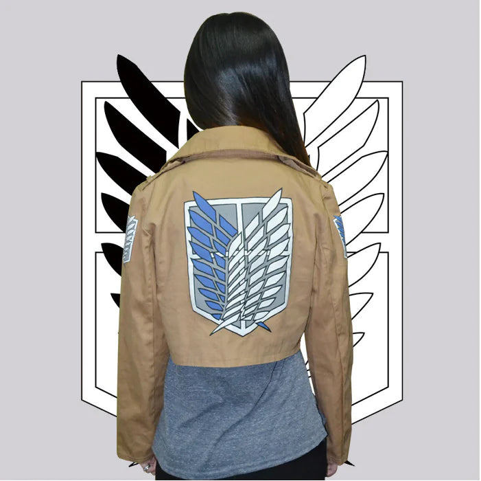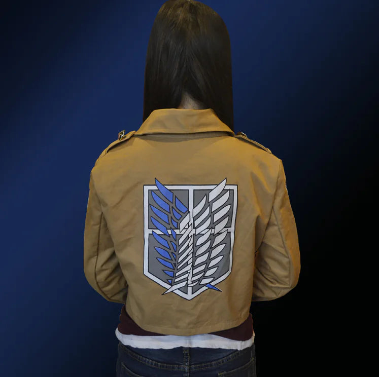 The sleek and stylish design features the iconic Wings of Freedom emblem, representing the fearless spirit of the Survey Corps. Whether you're heading to a convention, hanging out with friends, or just looking to make a statement, this jacket is sure to turn heads.