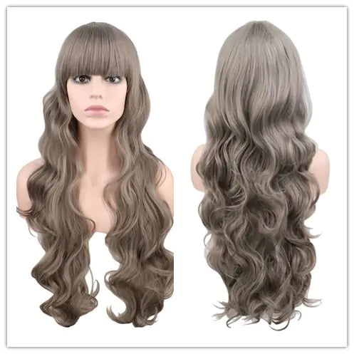 With its long curly locks and stylish oblique bangs, this wig offers a natural look that seamlessly blends with your own hair. The versatile design means it can be worn straight or styled to your liking, making it suitable for any occasion—be it a themed party, a cosplay event, or just a fun day out.