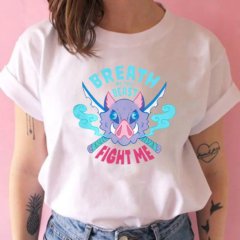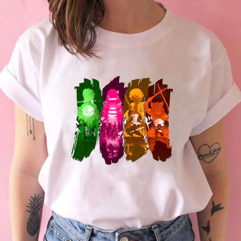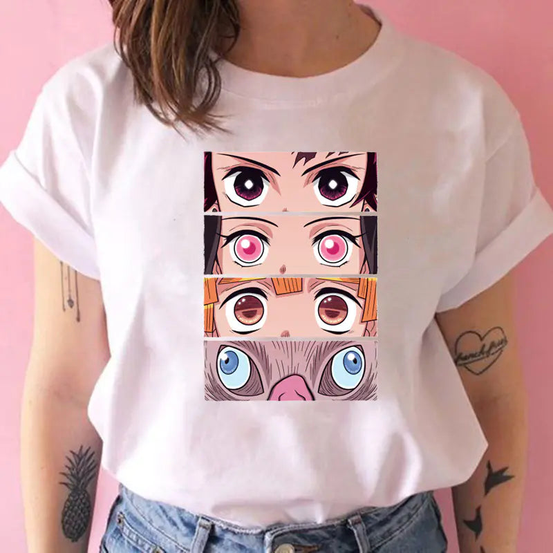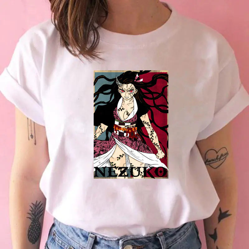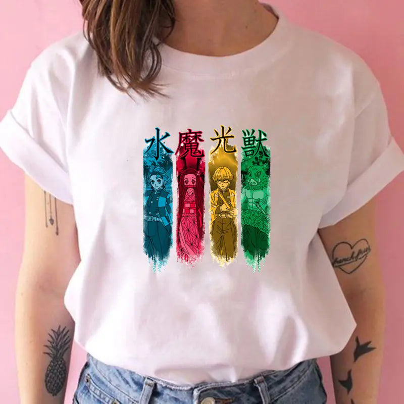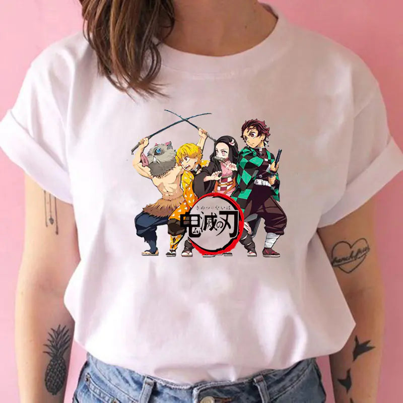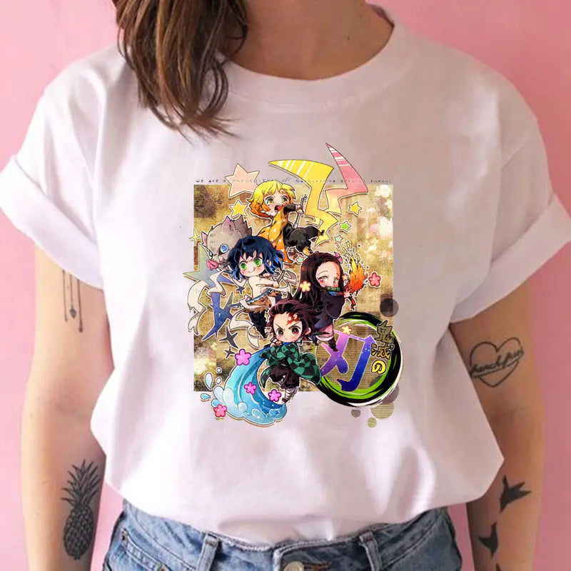 ★★★★★Discover the perfect blend of style and comfort with our Anime Demon Slayer Women's Printed White T-Shirt. Made from high-quality polyester fiber (81%-90% content), this t-shirt is designed for durability while providing a soft feel against your skin.
