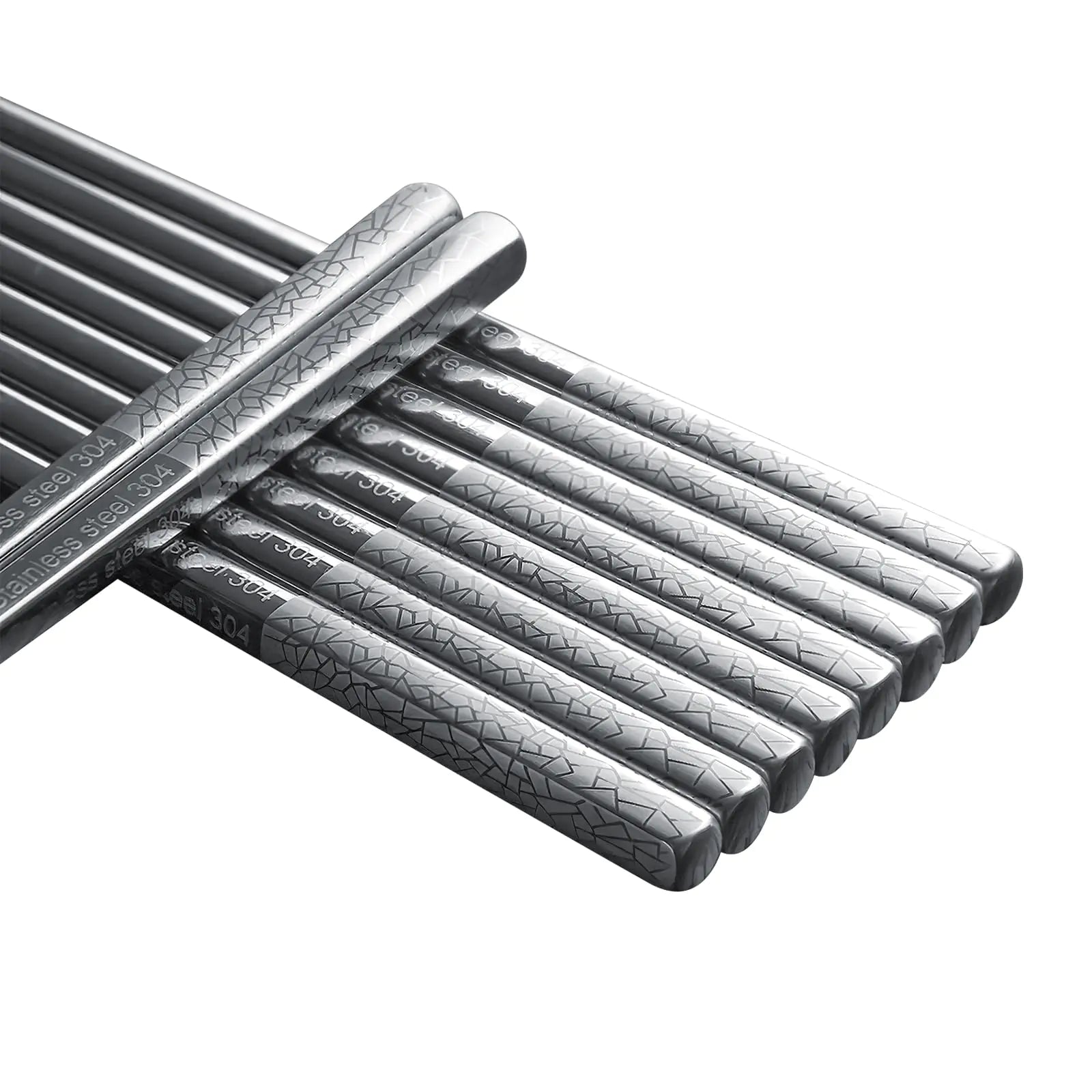 [High -quality Chopsticks: Chopsticks reusable are made of food -grade stainless steel SUS 304. High -quality and strong materials are more durable. Metal chopsticks is healthier than using bamboo chopsticks or disposable chopsticks. Laser carving pattern: Chopsticks reusable have permanent laser carving patterns which will not fade after a long period of use. Compared with chopsticks with smooth surface japanese chopsticks with carvings are more non -slip to ensure that side noodles sushi rice etc. control. Metal Chopsticks with Non-slip Design: A fashionable laser carvings are added to the tip of the chopsticks. Practice has proved that the cable carved chopsticks on the chopsticks can better grasp and retain food. It makes stainless steel chopsticks easy to use and avoids the occurrence of food falling. Chop sticks Reusable Dishwasher Safe: The surface of chopsticks reusable is seamlessly designed the dishwasher is safe and the color after washing will not fade. The ideal choice of chopsticks that can be reused can be used. Beautiful gifts: 5 pairs metal chopsticks with a beautiful gift packaging elegant chopsticks are any restaurant Asian style dinner party bar or food shop tableware choice stainless steel chopstick Household tools or good birthday gatherings festivals marriage Christmas gifts.]