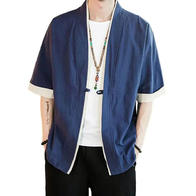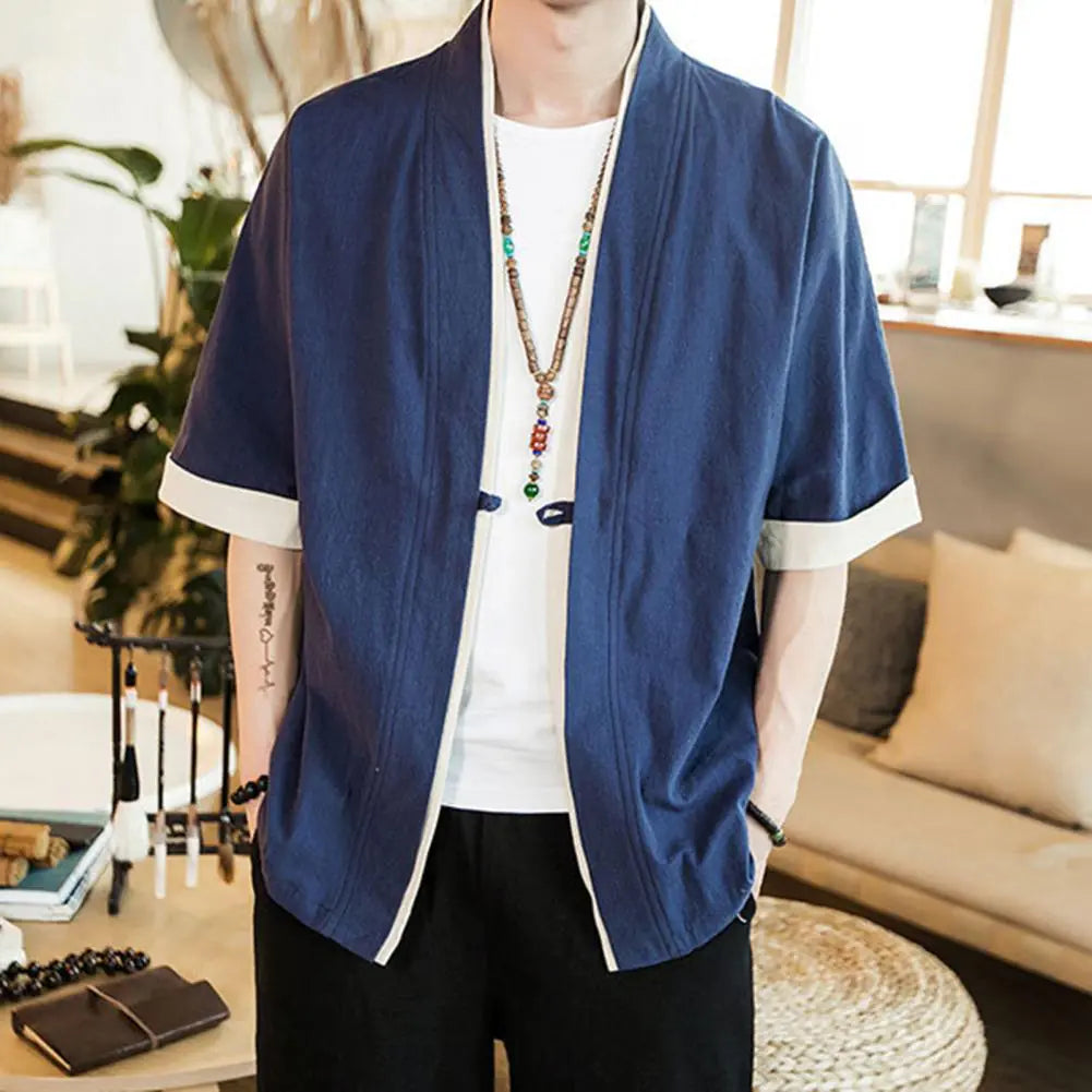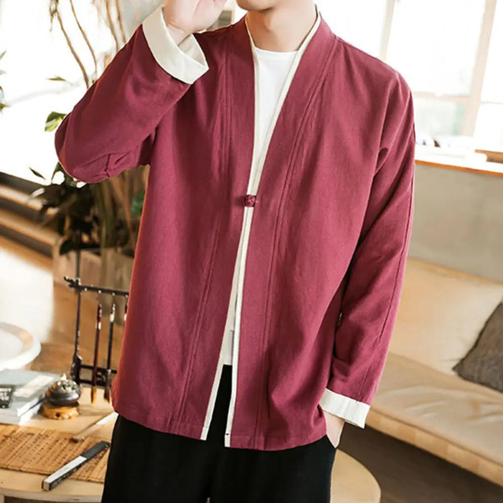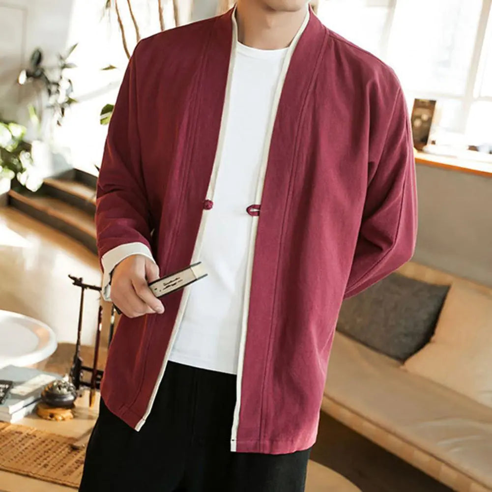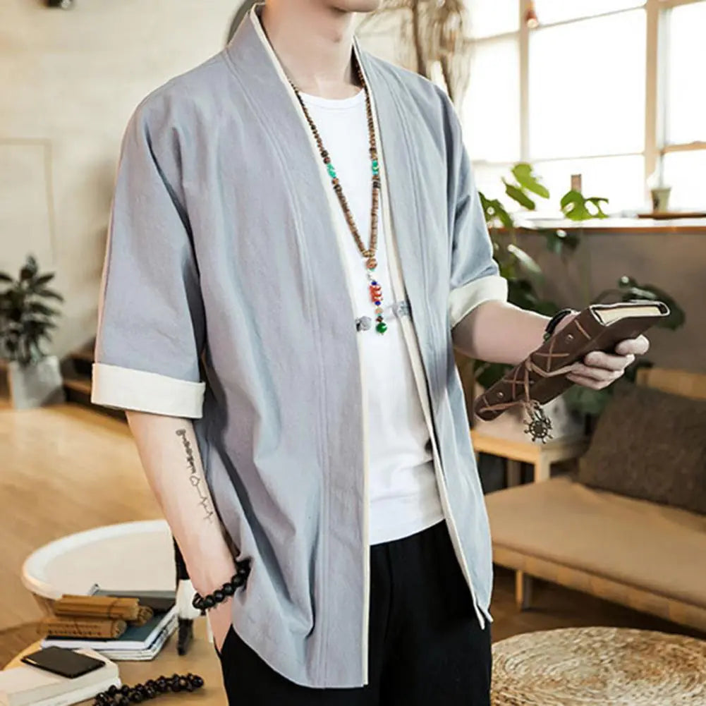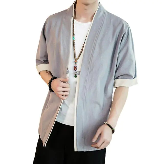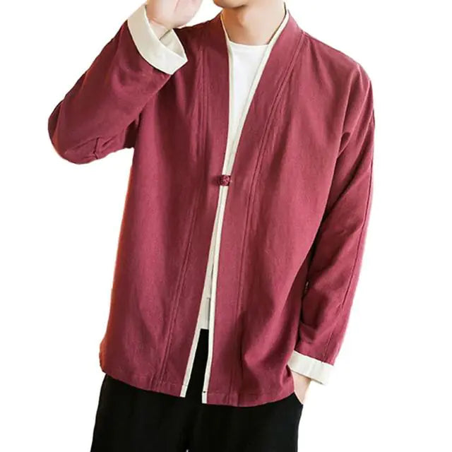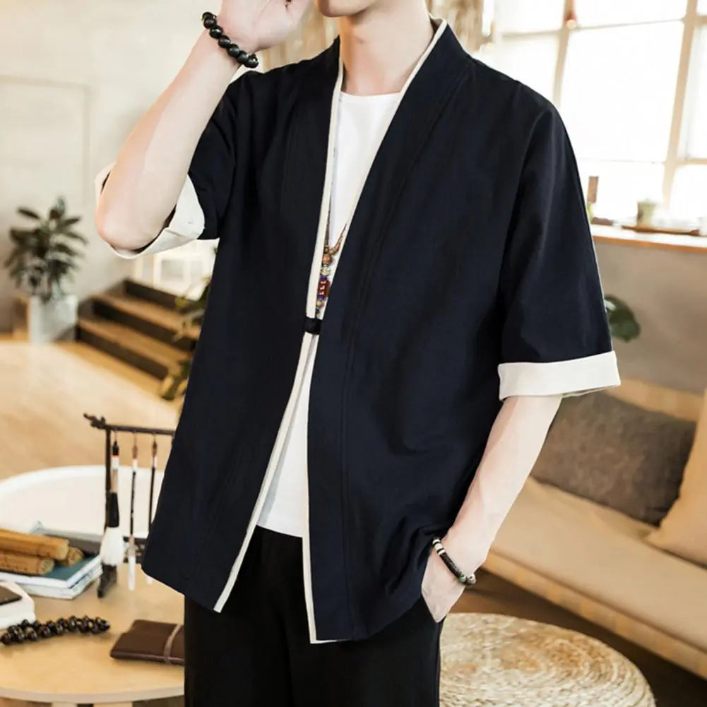 Japanese Style Men’s Cardigan Jacket with Color Panels