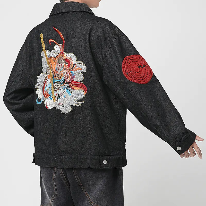 Japanese Style Men's Embroidered Casual Denim Jacket