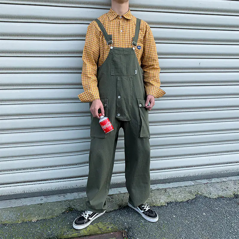 Crafted from high-quality cotton blended fabric, this loose-fit overall features a mid-rise waist and a convenient zipper placket, ensuring ease and flexibility. Its plain pattern allows for versatile styling, while the multiple pockets offer practicality for your everyday needs. Available in three striking colors: black, blue, and army green, you can mix and match to elevate your wardrobe.