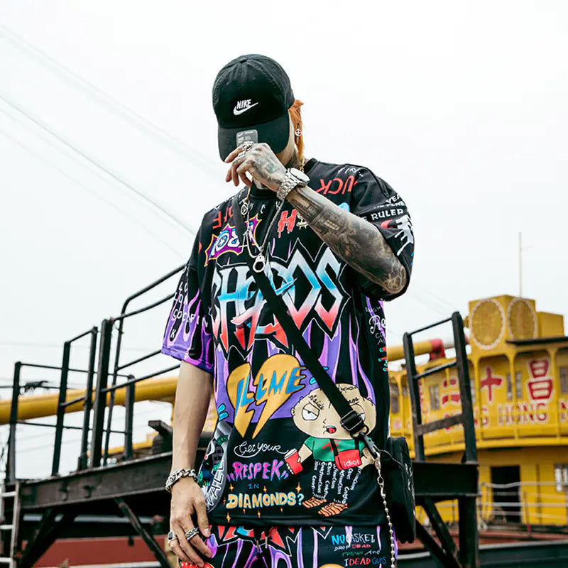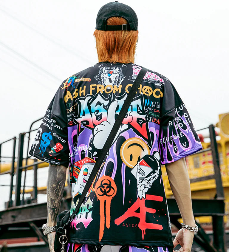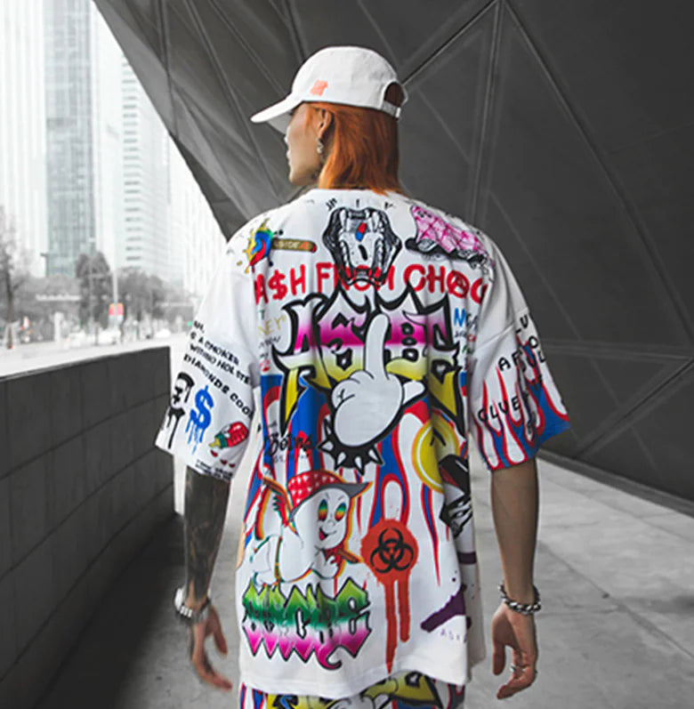 ★★★★★Unleash your inner street-style icon with our Hip Hop Loose Fit Short Sleeve T-Shirt, designed for those who dare to stand out. This striking t-shirt features a bold graffiti-inspired print that captures the essence of urban culture, making it the perfect addition to your casual wardrobe this summer.