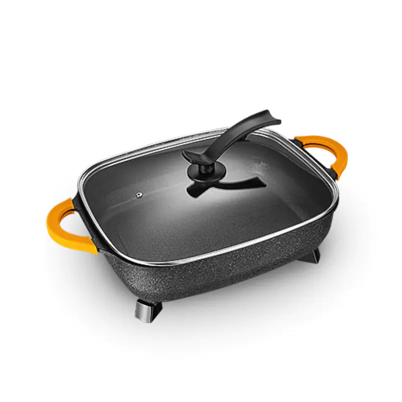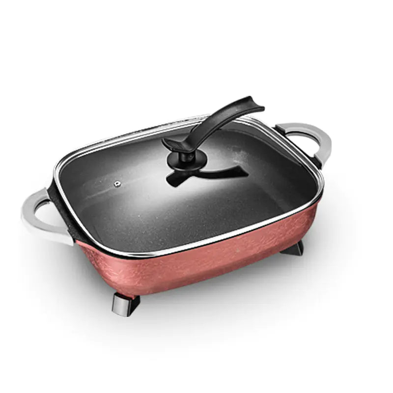 This electric hot pot is not just functional but also aesthetically pleasing, available in a range of colors including Red, Black, and Stone Color. Its compact design measures 30cm in width, 38cm in length, and 9cm in depth, making it an ideal addition to any kitchen or dining table.