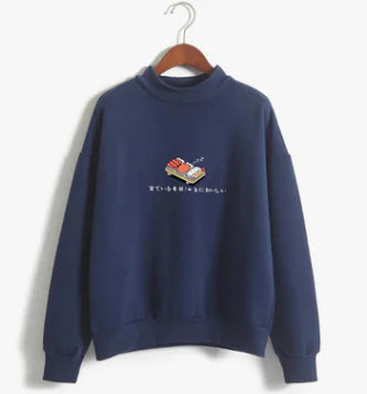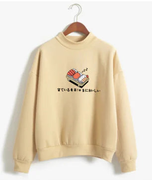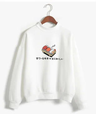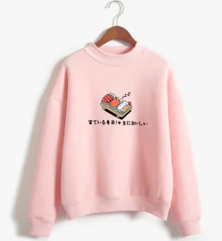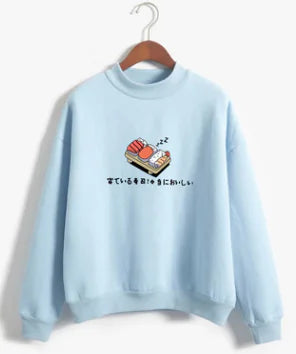★★★★★Embrace the cozy charm of our newest sushi print sweatshirt, a must-have addition to your wardrobe! Crafted from blended cotton fabric with a plush lining, this sweatshirt ensures ultimate comfort and warmth during those chilly winter days.