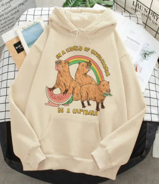 Crafted from high-quality polyester fiber with a composition of 65%, this hoodie is not only soft and cozy but also durable enough to withstand your busy lifestyle. The vibrant cartoon pattern adds a playful touch, making it a statement piece that stands out in any crowd.